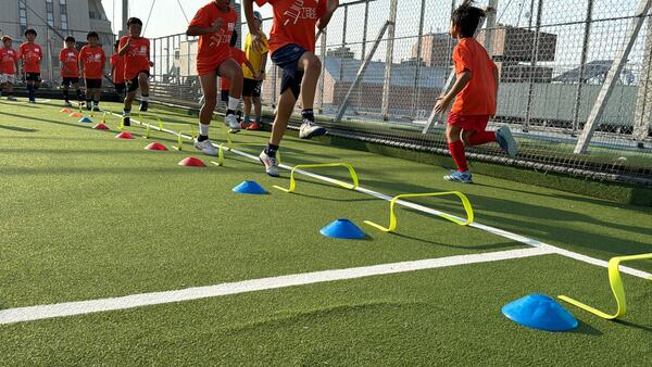 サッカーの土台となる20mの短距離スピードを上げる走る技術の習得。