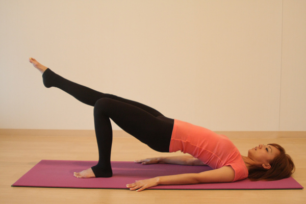 ポイントは片足がアップしているときに、お尻が下がらないこと。下腹のスクープをキープしながら、足だけ上げることです。