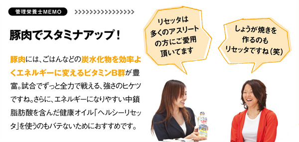 大儀見選手のVのチカラメシ「豚のしょうが焼き」。このメニューに隠された強さの秘密とは? 日清オイリオグループの管理栄養士が解き明かします。