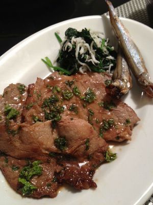 写真左(豚肉とパセリの生姜焼き、しらすとホウレンソウの炒め物、ししゃも)試合3日前のメニューの一例