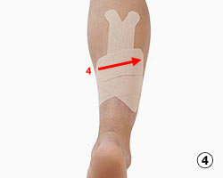 4本目はかかとの真横からスタートし、かかとを通したら、すねの方向に引っ張りながら貼り、完成となります。これらはヒールを履く女性やハイキング、登山、ジョギング、ウォーキングをする方にも有効です。
