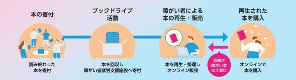 ブックドライブでは、集まった本が障がいのある方の就労支援施設に送られ、丁寧にクリーニングされ、ネットで販売されます。売上は工賃として働く方々に還元される仕組みです。つまり、寄付した本が"誰かのしごと"になります。