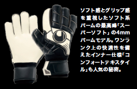 ソフト感とグリップ感を重視したソフト系パームの最高峰「スーパーソフト」の4mmパームモデル。ワンランク上の快適性を備えたインナー仕様「コンフォートテキスタイル」も人気の秘密。