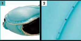①手のひら側のパーム素材を指先まで巻き込み、カバー。指先のグリップが手のひらとの一体感を生み出し、より繊細なタッチを実現する