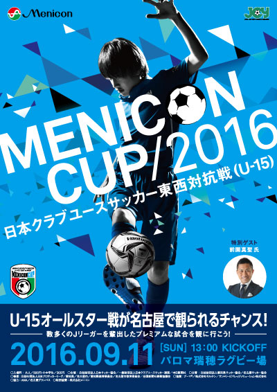 今大会で22回を数えるメニコンカップ2016 日本クラブユースサッカー東西対抗戦(U-15)(以下メニコンカップ)が今年も開催されます。全国クラブチームからピックアップされた選手たちが『ALL EAST』と『ALL WEST』に分かれて戦う中学生年代(15歳以下)のオールスター戦は、小学生にとってもぜひ参考にしたい試合のひとつです。