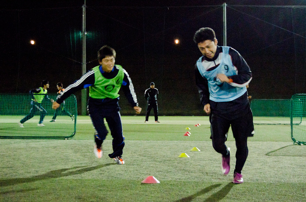 選手は目まぐるしく変わるメニューに、即時対応しなければならないので、体も頭も疲れる密度の濃いトレーニングになります。しかもこれなら、町クラブのようにコーチの数が少ない場合でも、最初にマーカーさえ並べておけば、効率的に選手を指導することができるでしょう。