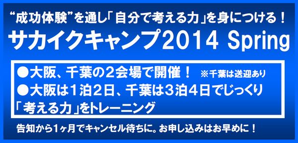 ※大阪:受付終了、千葉:キャンセル待ち※サカイクキャンプ2014 Spring