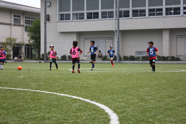 単なる反復練習ではなく、サッカー専用ピッチで状況把握、判断が必要な練習メニューを中心に構成します。考えることによる“成功体験”を通して「自分で考える力」を身に付けます。また、チームで成功ポイントを競わせるなど楽しみながら取り組める環境を設定します。