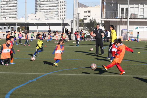 我々は低年齢の子どもに対しては、「子どもたちができて、なおかつやりたい!」 と思うことを指導するように心がけています。6、7歳の子どもであれば、ドリブルやシュートをしたいと思っています。どのようにドリブルをして、どのようにシュートを打てばうまくいくか、それを知りたいと思っています。子どもが興味を持っていることに対して、指導者が働きかける。そうすることで、子どもたちは積極的に学ぶ姿勢を見せてくれます。