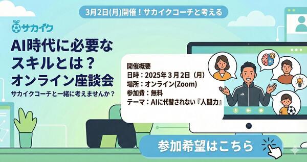 - 3/2(月)開催「AI時代に生き残れる子」とは サカイクオンライン座談会開催(無料)【参加者募集中】