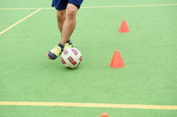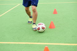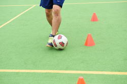 - マーカーの間を、アウトサイドを使ってジグザグドリブル