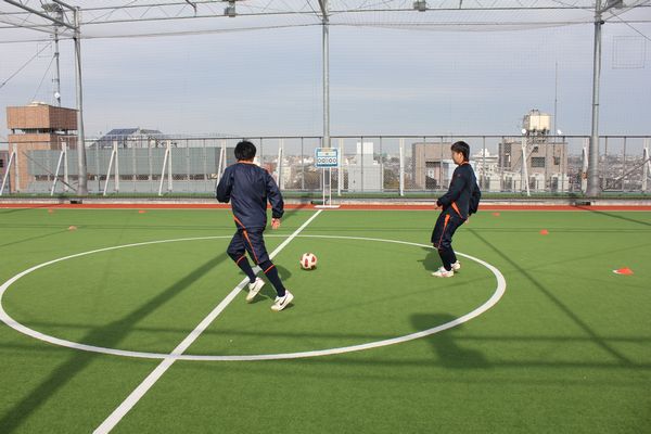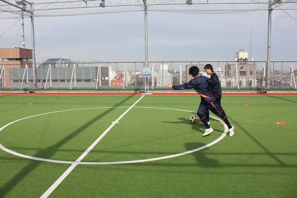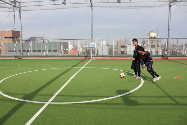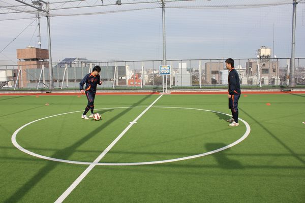 - 2人で3~4mの距離を置き、1人はパスをした後もう1人の背後を回り、タイミングよくパスをもらう