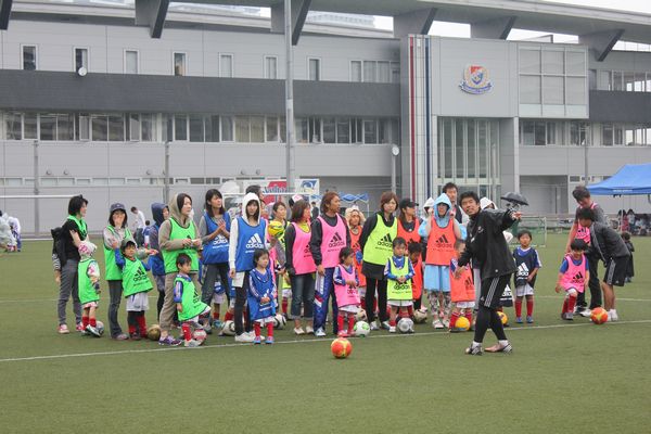 イベントに参加したのは、マリノスフットボールアカデミーに通う、小学1年生から年少さんまでの子どもたちとお母さん。ピッチの上でお母さんと一緒に楽しめるとあって、子どもたちは嬉しそうに集合しました。