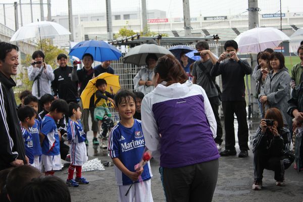 ドリブルがうまく出来なかったり、ゴール前でシュートを空振りしてしまったりという珍プレイ(?)も多々あり、子どもたちの笑いを誘っていました。
