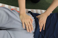 アキレス健を押すと痛いので、アキレス健を押さないように、真ん中の盛り上がっているか所ではなく、そのわきの少し溝になっている部分をかかとの方から上に押し上げてあげましょう。両手の親指でアキレス健を挟み筋肉を伸ばしていくイメージです。アキレス健は疲れが溜まりやすく筋肉が収縮しやすい個所なので、うまくできれば、子どもはとても喜んでくれるでしょう。