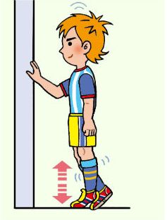 - 手を壁などにつき、逆側を後ろに回して、片足でかかとを出来る限りぎりぎりまで高く上げる