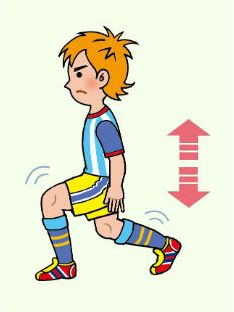 - 足を前後に開いて重心を沈め、上下に5センチくらいずつ揺する