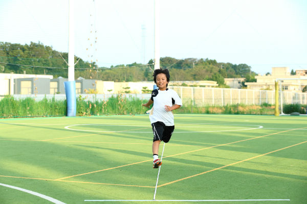 ■3.足裏のアーチ構造を形成する「発育インソール」を備えた、ミズノの『トランス ダッシュ a』を履いて30メートルを走る