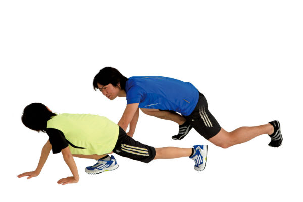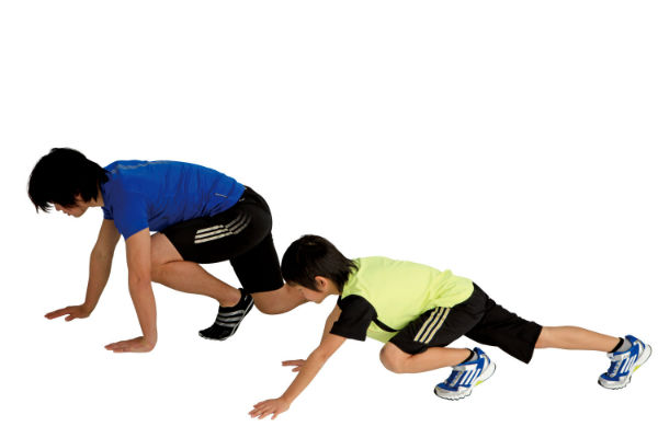 スタートとゴールを決めて競争してみましょう。ひざは床につかないよう注意。