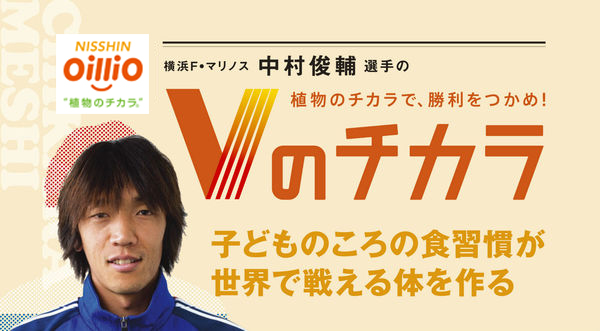 横浜Fマリノスのゲームキャプテンを務める中村俊輔選手。ジュニアユース時代には、栄養面でも教育を受けて、バランスよく食べることを心がけていたそうです。プロサッカー選手となり、海外チームへ移籍したときも、栄養バランスには細心の注意を払っていた中村選手。そんな中村選手がホームでの試合前に、クラブハウスで食べるVのチカラメシとは!?