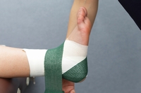 前回は「テーピングの知識が子どもの健康管理にも生かせる」と教えていただきましたが、「一度勉強した程度では、なかなかうまくできないのも事実。包帯など繰り返し利用できる素材で代用して、巻き方を練習していただくといいでしょう」と荒川崇先生(武蔵丘短期大学で「コンディショニング論」などを担当)。そこで自宅でも練習にも役立つよう、サッカー選手を悩ませる足首のねんざを予防するテーピングを荒川崇先生に教えていただきました。