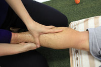さらにもう一つ手を滑らせるポイントになるのは、筋繊維がどの部位からどの部位をつないでいるかです。たとえば、アキレス腱。この部位はカカトから上に向かってふくろはぎの後ろの筋肉をつなぐ役割を果たしている腱です。アキレス腱そのものをマッサージするのも大事なことですが、つなぎ目になっているところもかなりストレスがかかっています。だから、その部分を含めてアキレス腱周辺と表現しているのです。意外とつなぎ目は見落としがちになるので、そこもほぐしてあげると、成長痛と呼ばれるスポーツ障害の防止にもつながります。