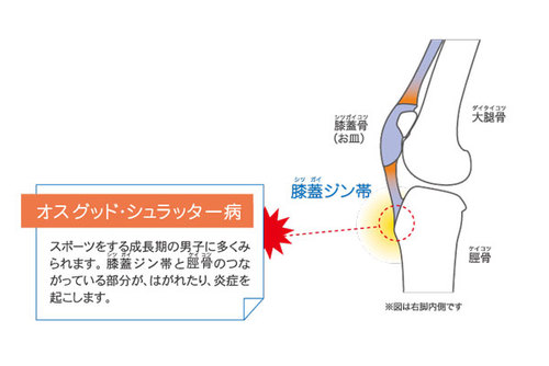 子どもの成長期に遭遇しやすいケガの代表格が、オスグッド病です。正式名称は、オスグッド・シュラッター病といいます。