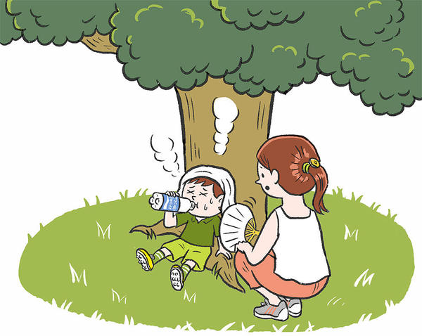 軽症であれば、日陰やエアコンのついた部屋に行くなど涼しい場所へ移動し、着衣を緩めて水分補給をします。摂取する水分は体内塩分の減り具合、時期にもよりますが塩分がある程度失われている初期の熱中症では電解質(イオン)の入ったスポーツドリンクや経口補水液を飲ませます。分量としては0.5~1リットル程度が目安です。汗の99%が水分で、残りの1%にナトリウム・塩分を中心にカリウム、カルシウム、マグネシウムとミネラルが含まれています。失われた水分を補うという意味では麦茶や水でも有効です。