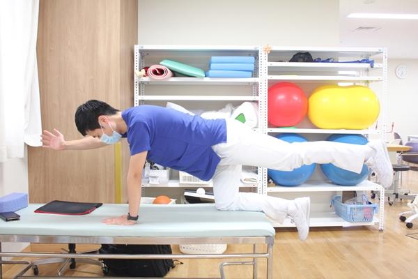 自重トレーニングで代表的なのが、ダイアゴナルの動きです。片膝を地面に着き、片手を上げるポーズをしたことのある人も多いのではないでしょうか。
