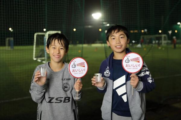 そんなコンディショニングを徹底している大豆戸FCの方々に、スポーツを頑張るお子様の成長とカラダづくりに必要な栄養素を追求し開発された本格成長サポートサプリメント「セノバス+」を試飲してもらいました。