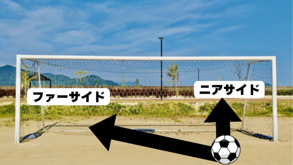 「ニアサイド」は、ボールのある場所から見て、より近い側のスペースを指します。