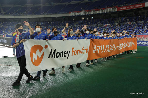 横浜F・マリノスのサポーターのみなさんとは、冠試合のコンセプトやノベルティなどについてディスカッションさせていただき、冠試合のコンセプトが「マリノスファミリーみんなでもっと前へ」に決まりました。ほかには「マネーフォワードME」をご利用いただき、ライフプランに合わせてお金を管理していくことで、より良い人生を歩んでいただけるようなお手伝いができればと思っています。