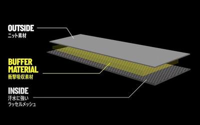 ラグビーなどでもヘッドプロテクターを着用しますが、サッカーならではの特徴としてヘディングプレーがあるため、頭を守るための衝撃吸収性だけでなく、ボールを跳ね返す反発性との両立が必要になります。そのため、衝撃吸収性と反発性をバランスよく発揮する素材「トランスイエロー」を採用しています。ヘディングをする際には、頭部の衝撃吸収性だけでなく、ボールを跳ね返す反発性やボールをコントロールするためのフィット感などが必要になります。「プロテクトヘッドバンド」は、複数の素材や厚み、形状などの組み合わせから、衝撃吸収性と反発性のバランスをとり、さらにズレにくいよう頭にフィットするしなやかさやボールを打つときに滑りにくい表面感などを追求。ヘディング時の感覚やボールの方向性に対しても着用の違和感が少なく、ヘディング時の痛みの緩和にも繋がる商品の開発に至りました。