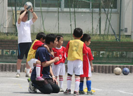 「興奮するとどうしても罵声になってしまうので(笑)、言葉使いには注意していと思っています。また自分の子どもだけなく、チームのすべての子を応援するようにしています。いいプレイはもちろん、調子が悪いには「ドンマイ!」と励ましの声を掛けるようにしています」(東出さん) 「がんばっている子どもは「がんばれ~」といわれても「やってるよ!」と思うようです。「ナイスシュート!」など、子どものプレーを褒めるように声をかけるといいですよ」(1、2年生担当コーチ)