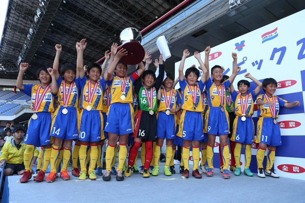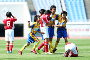 5月5日、日産スタジアム(神奈川)にてJA全農杯チビリンピック2013小学生8人制サッカー全国決勝大会の決勝戦が開催されました。対戦したのは共に初出場で初優勝をめざすベガルタ仙台ジュニア(東北・宮城)と、ソレッソ熊本U-12(九州・熊本)の2チーム。試合は互いに譲らず迎えた第3ピリオドの6分、ベガルタ仙台ジュニアのキャプテン佐藤唯斗くんの鮮やかなループシュートが決まり、待望の先制点を奪いました。終了間際、ソレッソ熊本U-12が怒涛の反撃を見せましたが、ベガルタ仙台ジュニアが守りきって1-0で勝利し、初優勝を飾りました。
