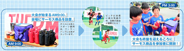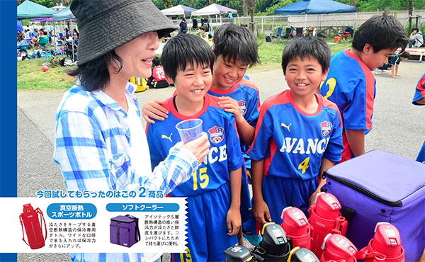 保冷力に定評があり、スポーツやアウトドアで大活躍のサーモスの真空断熱スポーツボトル。内筒と外とうの2枚の金属の間を真空にすることで、驚異の保冷力を実現しています。この日は千葉県のフットサルプラスユーカリが丘にお邪魔し、朝9時にスポーツドリンクをつくりました。そして5時間以上日差しの下に置いてから、試合直後の小学生とそのお母さんたちにドリンクを飲んでもらいました。(取材・文 中村僚 写真 鈴木蹴一)