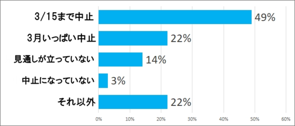 当初、「この1、2週間がカギ」ということで3/15(日)までの自粛要請が出ていたこともあって、約半数の答えが「3/15まで」という結果でした。