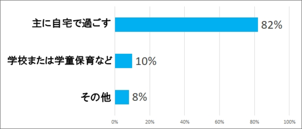 休校中は主に自宅で過ごすという回答が最も多く、82%でした。その他の中には保護者の職場にお子さんの居場所を作ってもらったという回答や、どちらかの祖父母宅で過ごしてもらう、などの回答が見られました。