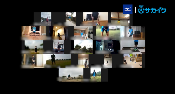 この取り組みは、外出に制約が求められ以前のように十分に練習できる環境にない中でも、上手くなるために練習したいという子どもたちの想いに応えるものとして開催されたもの。子どもたちは、事前に届けられたミズノ『ウェア』と『ゼログライドシューレース』を着用のうえ各自の自宅からzoomにアクセス、サカイクキャンプヘッドコーチによるデモンストレーションを見ながらコーディネーションやボールタッチの向上トレーニングに取り組みました。
