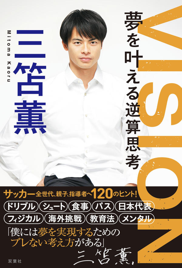 三笘薫選手の初の著書『VISION 夢を叶える逆算思考』(双葉社)には、普通のサッカー少年がなぜ“世界のMITOMA”と評価されるようになったのか――。三笘選手を形作る「ドリブル利き足練習法」、「世界基準を目指すシュート法」、「ドリブルを生かすパス法」、「世界に最速で行くための伸ばし方」、「子供時代の教育法」、「食事メニュー」、「サッカー脳の作り方」、「フィジカル法」、「メンタル法」、「走りの技術」、「睡眠法」、「英語習得法」、「海外チーム挑戦法」など……、「120のメソッド」がサッカー少年やサカパパ、サカママ、指導者に向けて初めて公開されている。