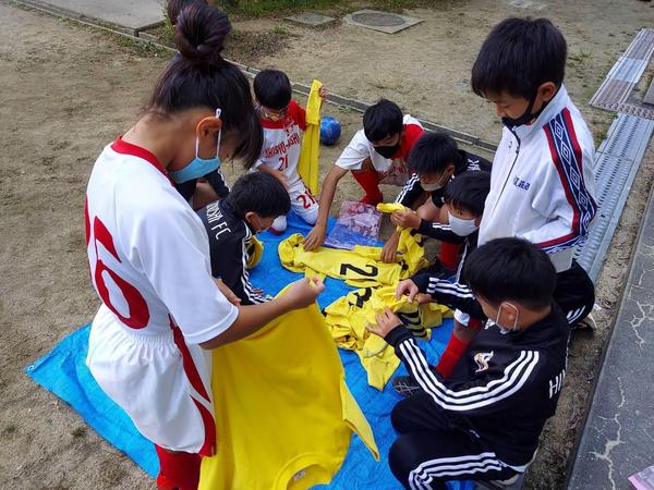カラフルなユニフォームに身を包んだカンボジアの子どもたちからは「サッカーの練習をがんばりたい」「生地が良くて、洗剤の良い匂いがする」と笑顔がこぼれ、「カンボジアに来たら一緒に試合をしましょう」とメッセージを送ってくれました。それを聞いた日本の子どもたちは「お互い全力で試合をしましょう!」と反応するなど、ユニフォームを通じて、国際的に交流することの楽しさを感じた様子でした。