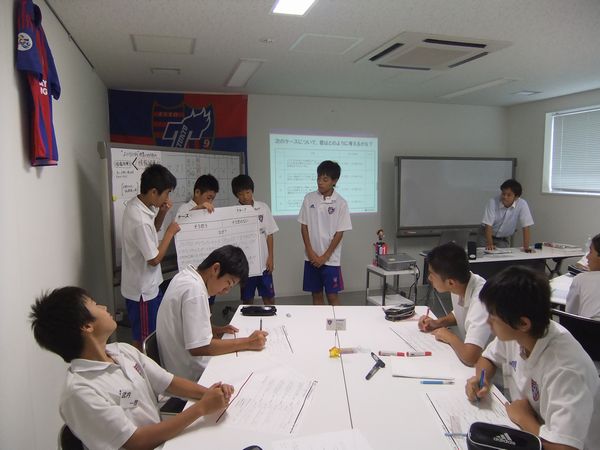 このプログラムに正解はなく、「何度も失敗を許す経験」の中で、積極的に発言し、自由な発想を育む環境を作り出しています。また子どもたちに刺激を与えるゲストティーチャーの参加も特徴的です。例えば第1回の「“お金”から仕組みを考える」では、社長の立場になって経営のシミュレーションをした後、所属するJクラブの社長がゲストティーチャーとして登場。実際の収支や経営に対する考え方などを話してもらい、現場の視点から情報提供する機会を設けています。