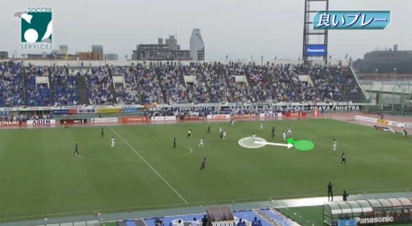 ※センターバックが前に出てできたスペースをボランチがサポートした例