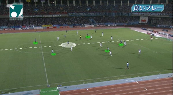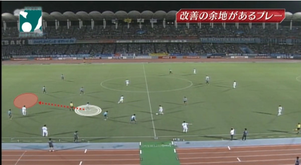 ※ボランチがサポートしなかったためスペースが空いてしまった例