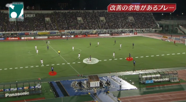 ※自分の前後の選手に対して上手くダイアゴナルなポジションがとれていない例