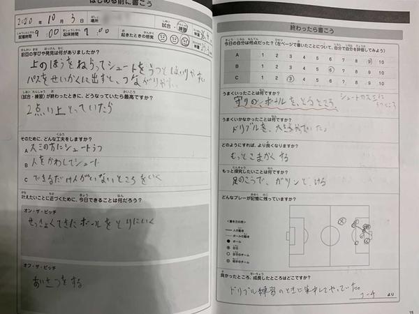 練習や試合の後、毎回ノートに記入する習慣ができるのが理想です。そういう習慣になってほしいと願う親御さんも多いでしょう。