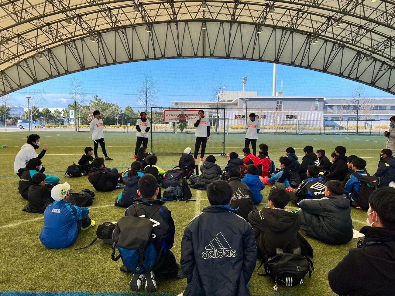 2022年1月4日、大阪のJグリーン堺で東口順昭選手のGKクリニック「MASAAKI HIGASHIGUCHI GOALKEEPER CLINIC」が開催されました。クリニックは2部構成で実施。1部は小学生、2部は中学生のカテゴリーで行われました。