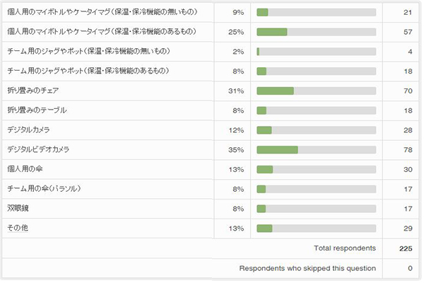 観戦にもっていくものにはどういったものがあるのか、200名以上のサカイク読者に答えてもらいました。