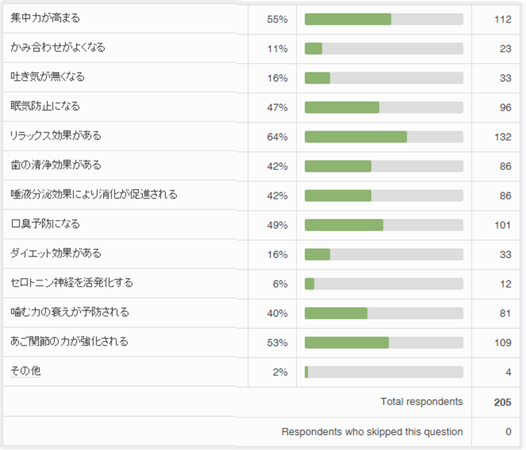 ■ガムを噛むことによる効果のうち、知っていたものはありますか?いくつでもお答えください。