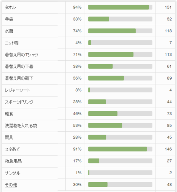 ■お子さんが普段サッカーの時に使うバッグの中に入っているものにチェックを付けてください。